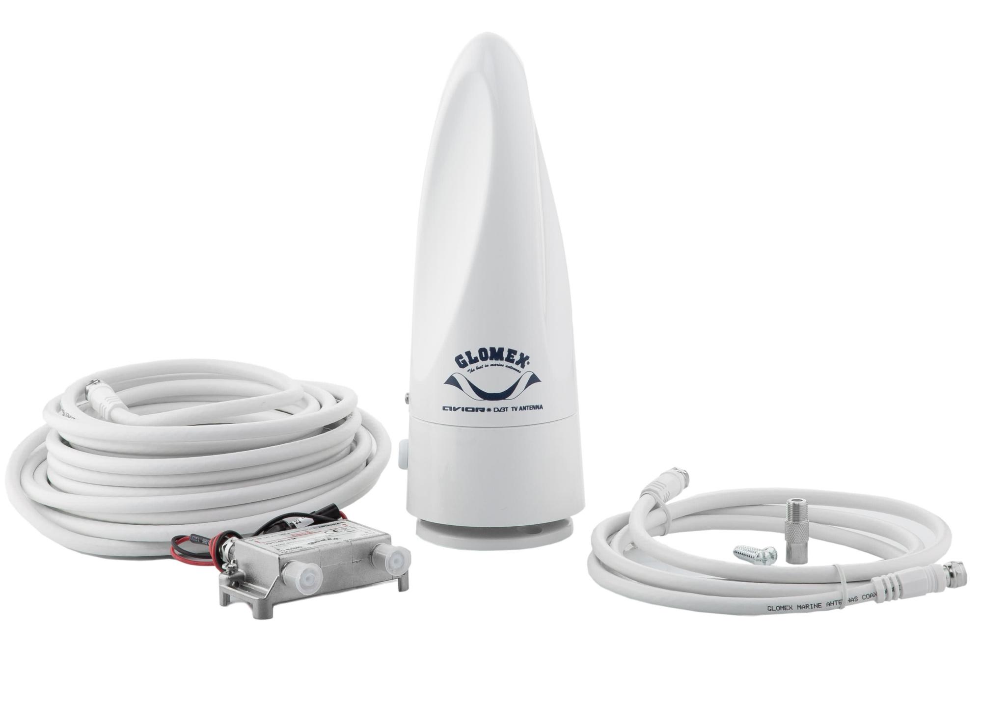 AVIOR значительно улучшился по дизайну и характеристикам, не потеряв при этом своих основных характеристик. Подходит для парусных и моторных лодок. У него отличный прием даже во время вождения. Эта компактная и легкая телевизионная антенна имеет диаметр 100 мм и высоту 210 мм. Он принимает вертикально и горизонтально поляризованные телевизионные сигналы. Входящий в комплект комбинированный блок обеспечивает питание, а также является антенным переключателем для подключения к телевизору. Для одновременного подключения двух телевизоров необходим дополнительный антенный переключатель. Поставляется с коаксиальным кабелем (10 м), телевизионным кабелем (1,5 м) и подставкой.
