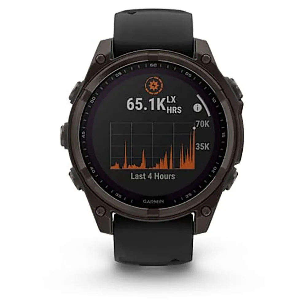 Эти прочные часы премиум-класса, рассчитанные на подводное плавание, оснащены герметичными кнопками, металлической защитой сенсора и постоянно включенным 1,4-дюймовым дисплеем с солнечной батареей, устойчивым к царапинам сапфировым стеклом и титановым безелем. Часы прошли испытания на термостойкость, ударопрочность и водонепроницаемость в соответствии с военными стандартами США.