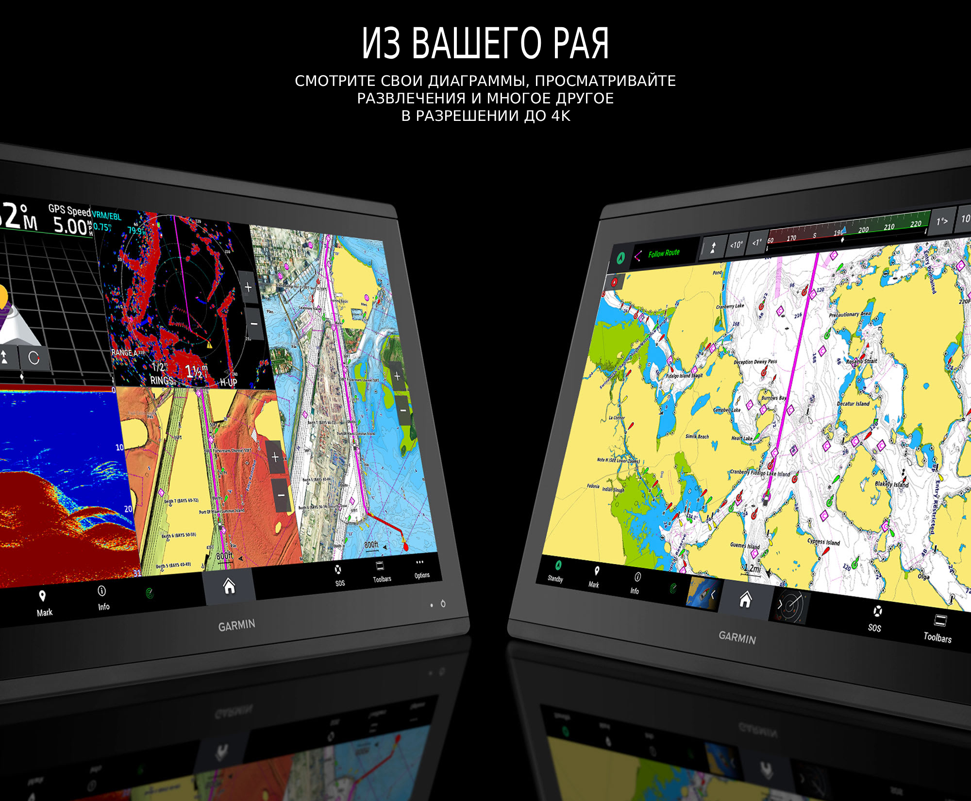 Это первый в отрасли интегрированный картплоттер с сенсорным экраном 4K. Наслаждайтесь чёткостью изображения по всему экрану и роскошью на стеклянном штурвале с превосходным дизайном и материалами, а также улучшенными возможностями подключения и скоростью.