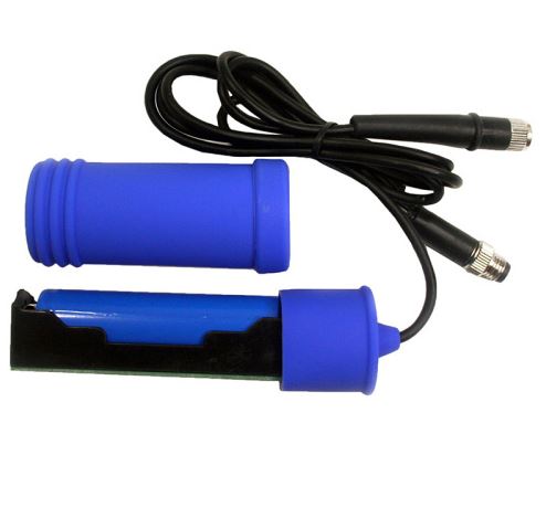 Аккумуляторная Li-ion батарея 18650 3.6V емкостью 3500mAh располагается в силиконовом чехле для защиты от грязи, пыли. Главный разъем необходимо вставить в блок эхолота, а ко второму разъему подсоединить кабель с датчиком.