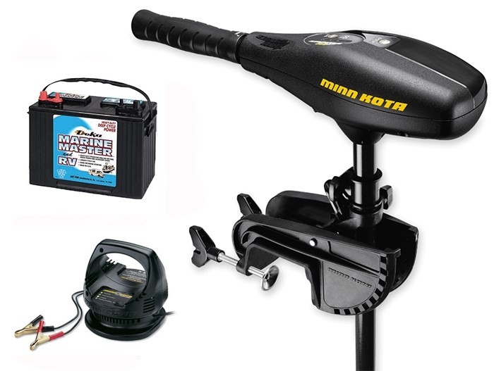 Комплект включает в себя электромотор Minn Kota Endura Max 45, аккумулятор DEKA DC 31DT (120 А*ч) и зарядное устройство Minn Kota MK 110P.