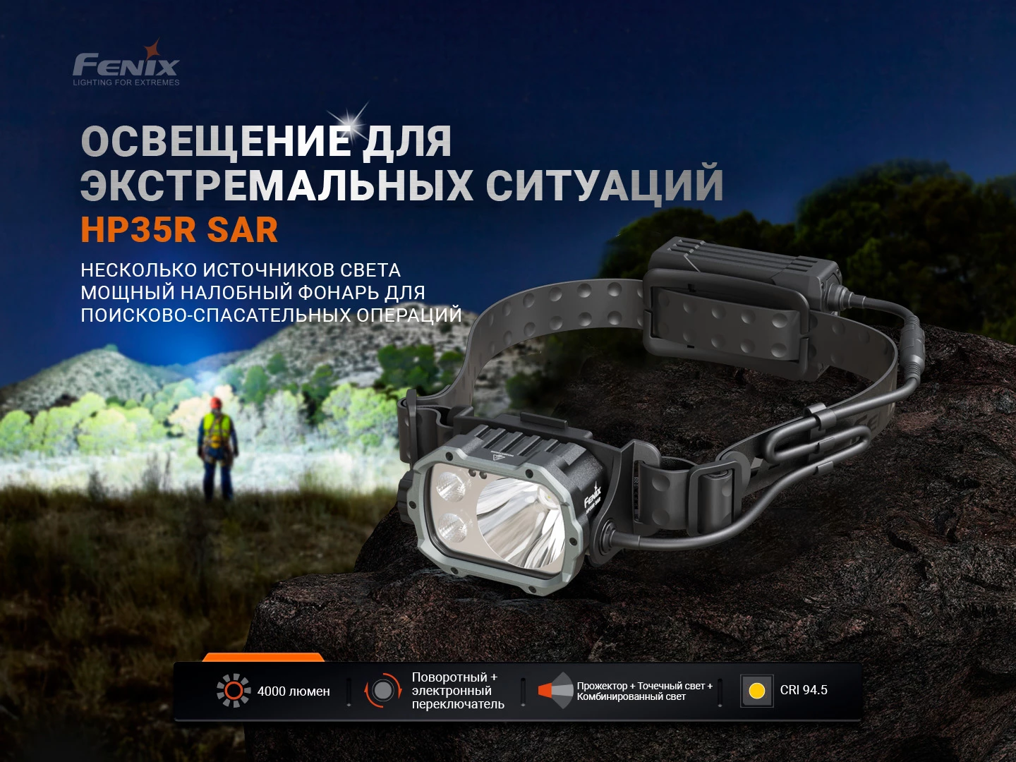 Налобный фонарь Fenix HP35R — это мощное и надежное световое устройство для экстремальных или промышленных условий. Светодиодный налобный фонарь Fenix идеально подходит для спелеологии, обслуживания сложной техники, поисковых и спасательных операций, медицинской помощи и других активных задач на открытом воздухе, где необходим высокий уровень освещения.