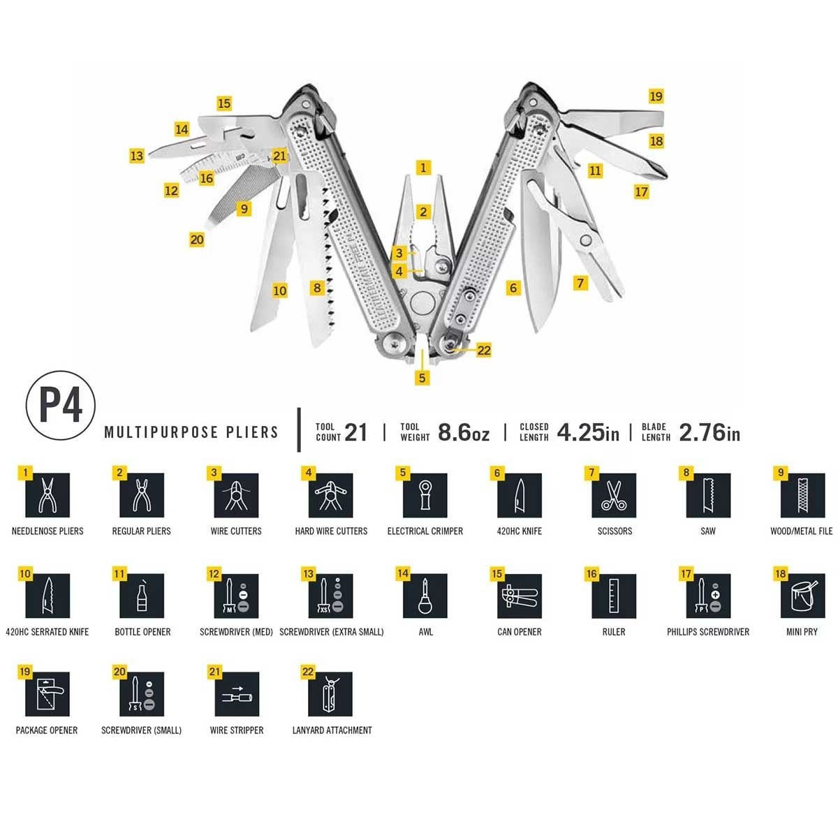 Магнитные вставки , используемые в рукоятках Leatherman Free P4, обеспечивают устойчивость инструмента в сложенном положении. Оптимально подобранная сила магнитов и точная подгонка элементов позволяют легко открывать мультитул одной рукой .